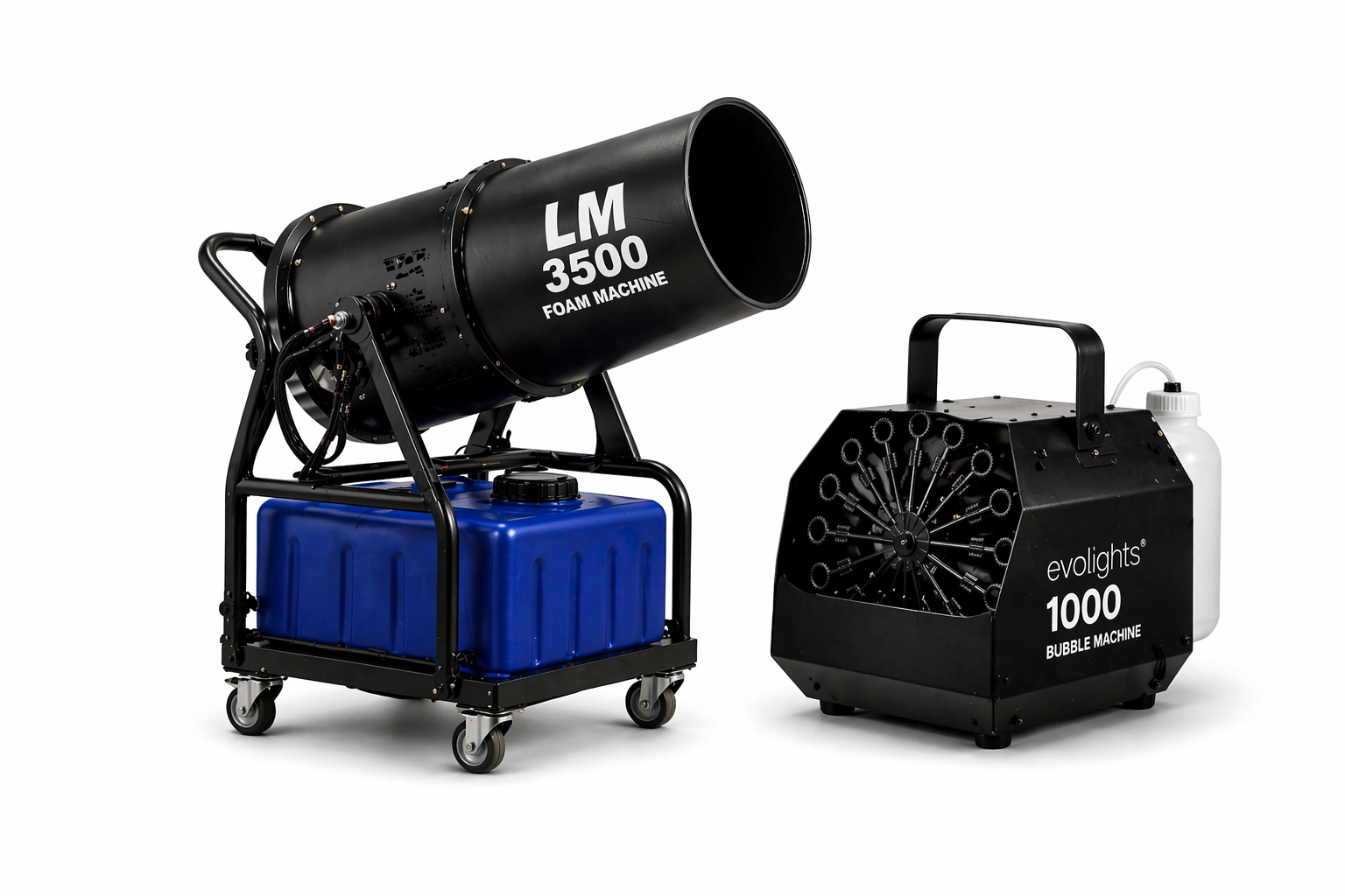PARTY SET č.8 - Výrobník bublin Evolights 1000, pěnové dělo LM 3500