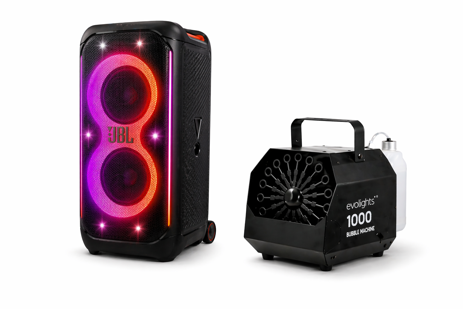PARTY SET č.5 - JBL PPARTY BOX STAGE 320, výrobník bublin Evolights 1000